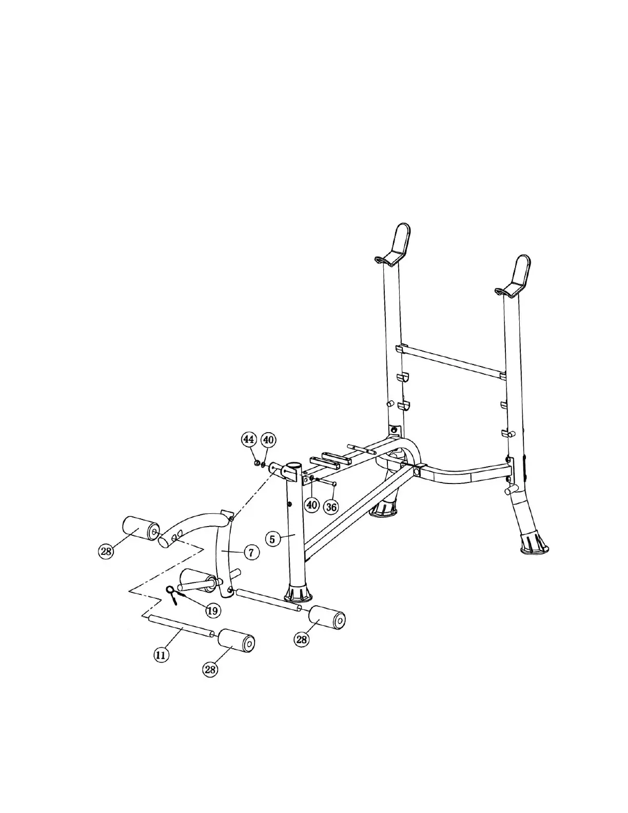 A.) Attach the Leg Developer (#7) to the Front Leg (#5). Secure it with one M8 x 3 1/8”