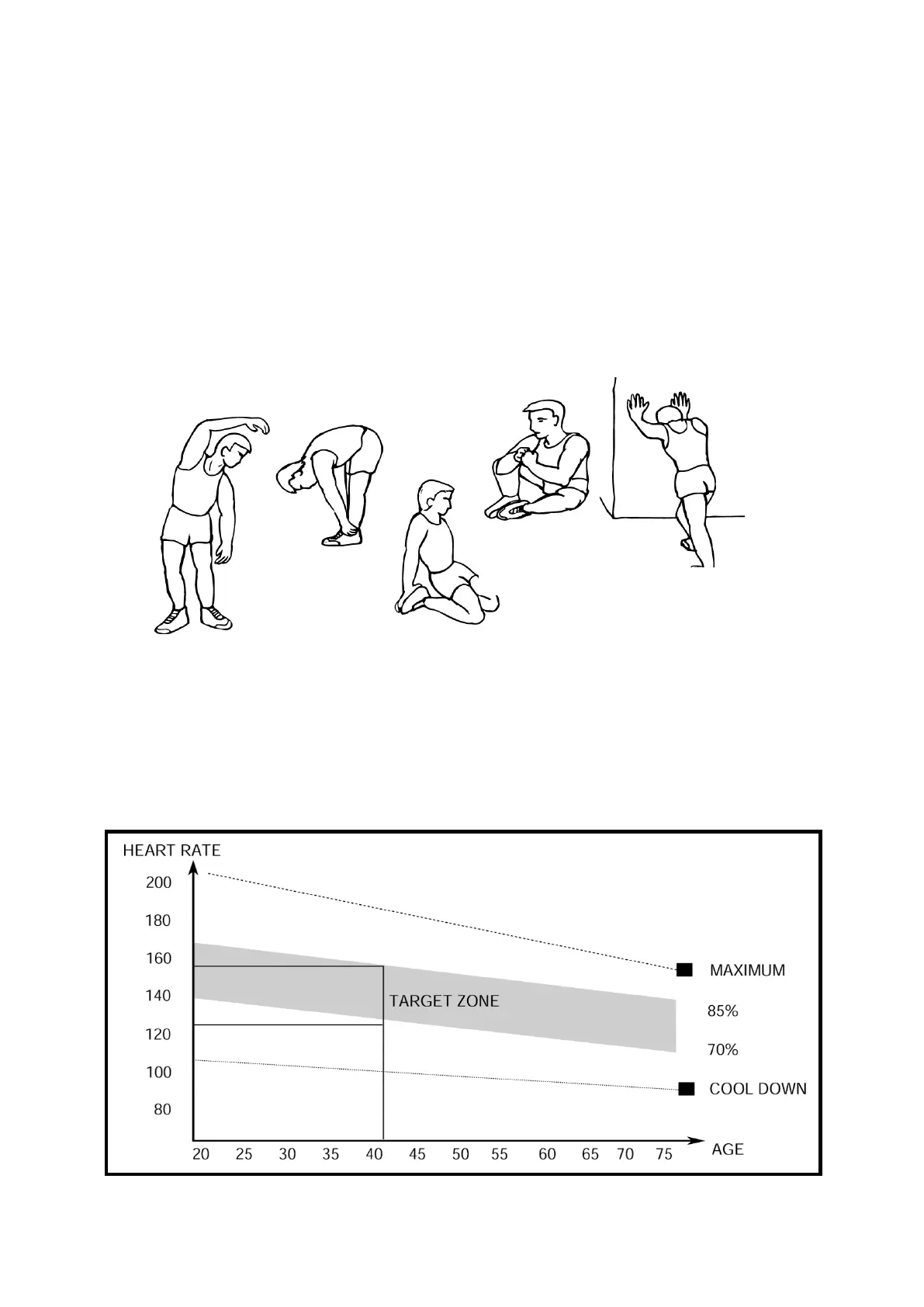 reduce the risk of cramp and muscle injury. It is advisable to do a few stretching exercises as shown