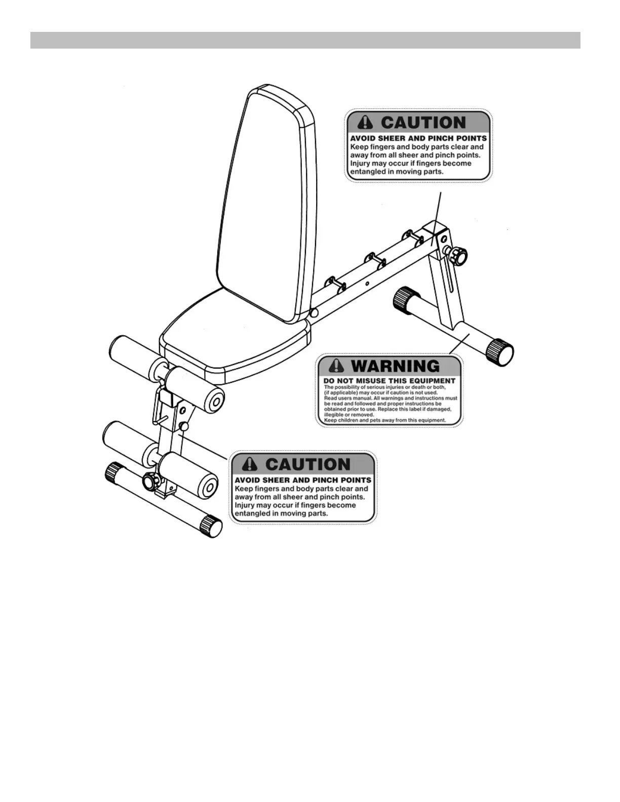 The warning and caution labels are shown here have been placed on the Front Support, Rear Support, and Main