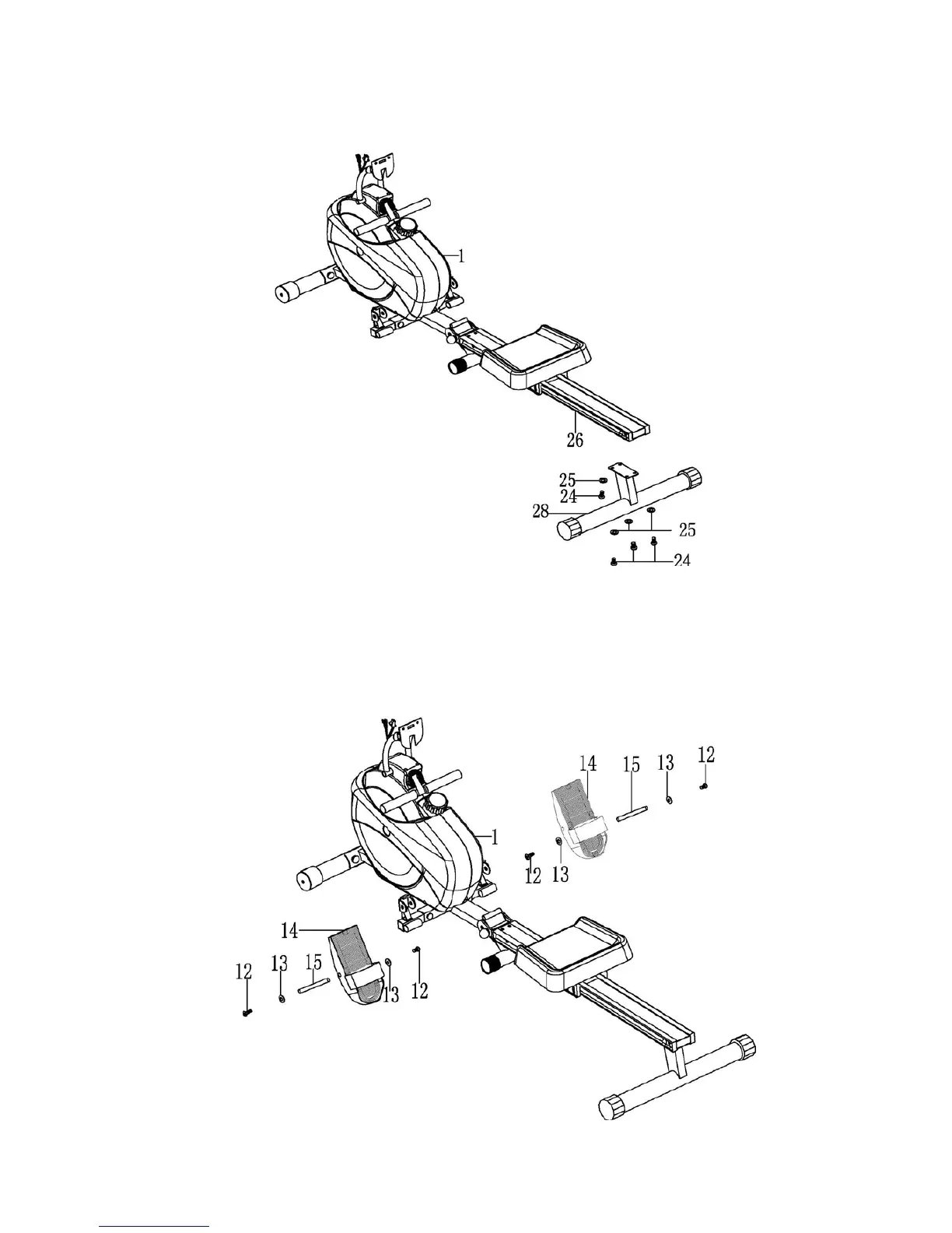 Attach the rear stabilizer (28) to back of the slide rail (26). Secure using four allen bolts (24)
