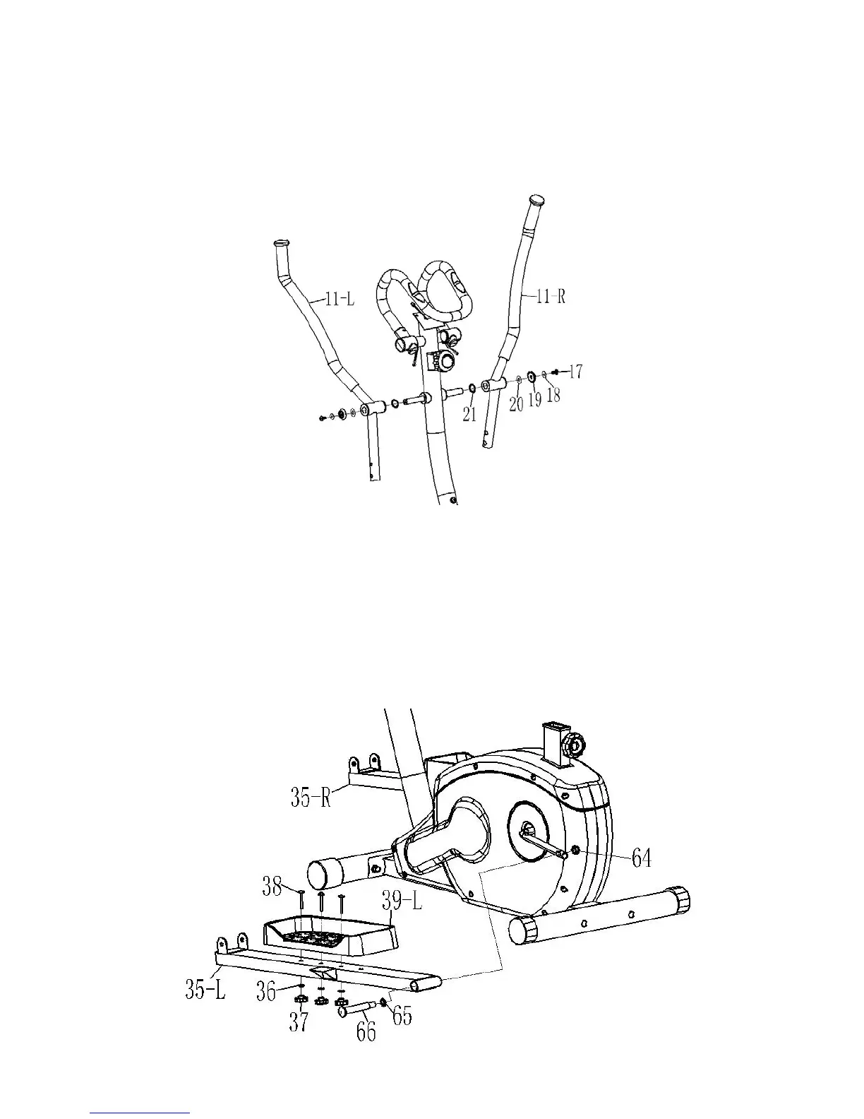 Assemble the left pedal (39-L) onto the left pedal arm (35-L) and secure into position using 3 bolts