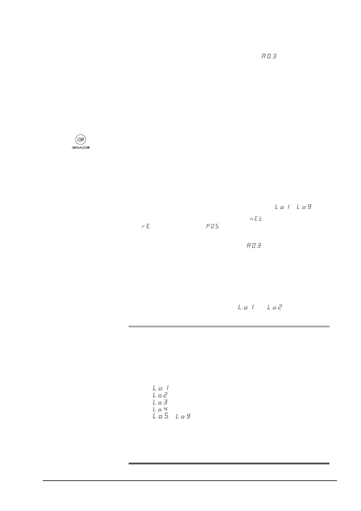 number of the selected grading memory is shown on the Config Display.