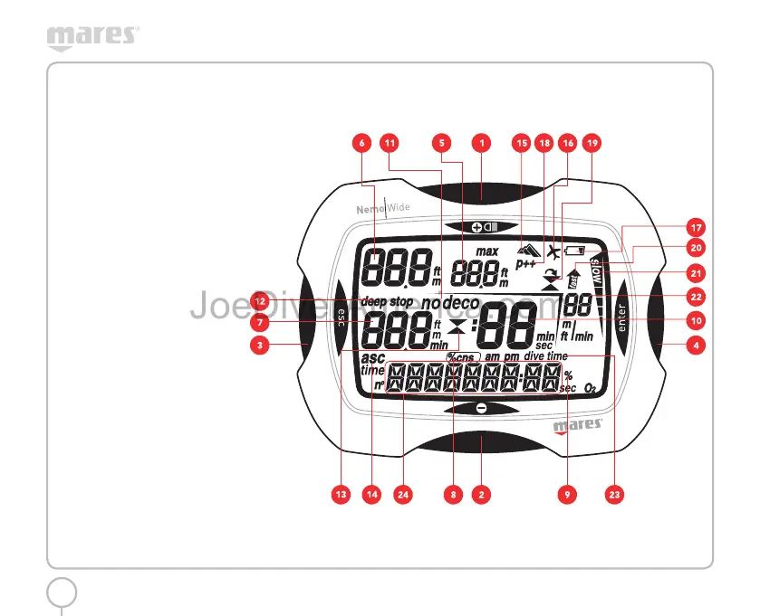 11 No-decompression dive indicator (NO DECO)