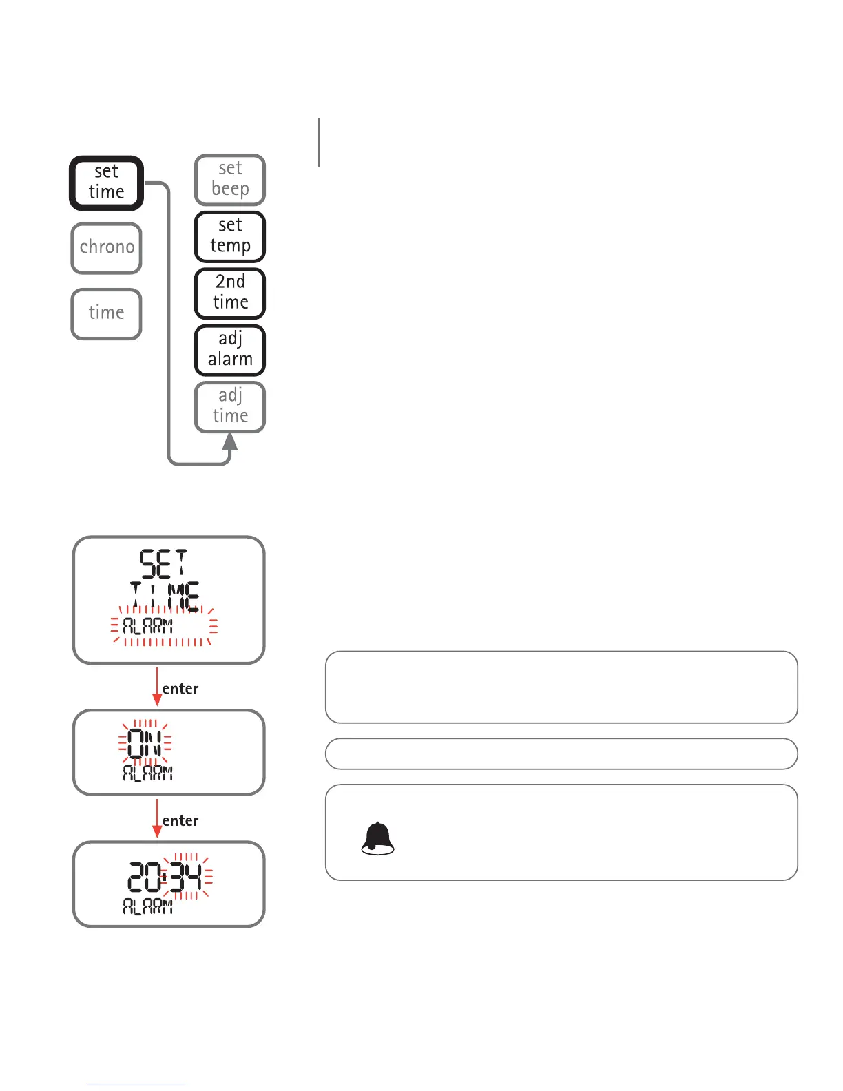 <enter> button to enable the alarm (the "ON" message