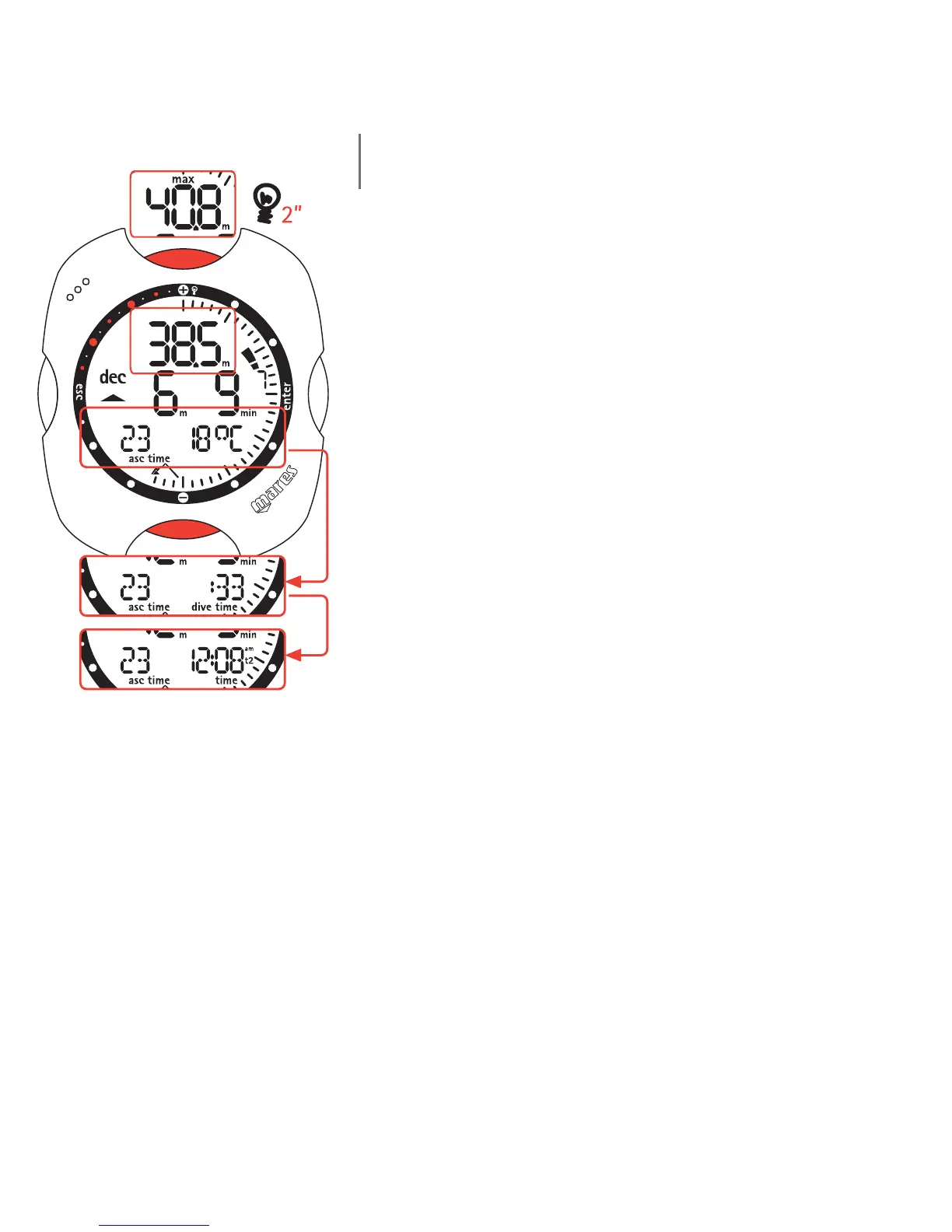 • the duration of the dive so far (dive time) in digits