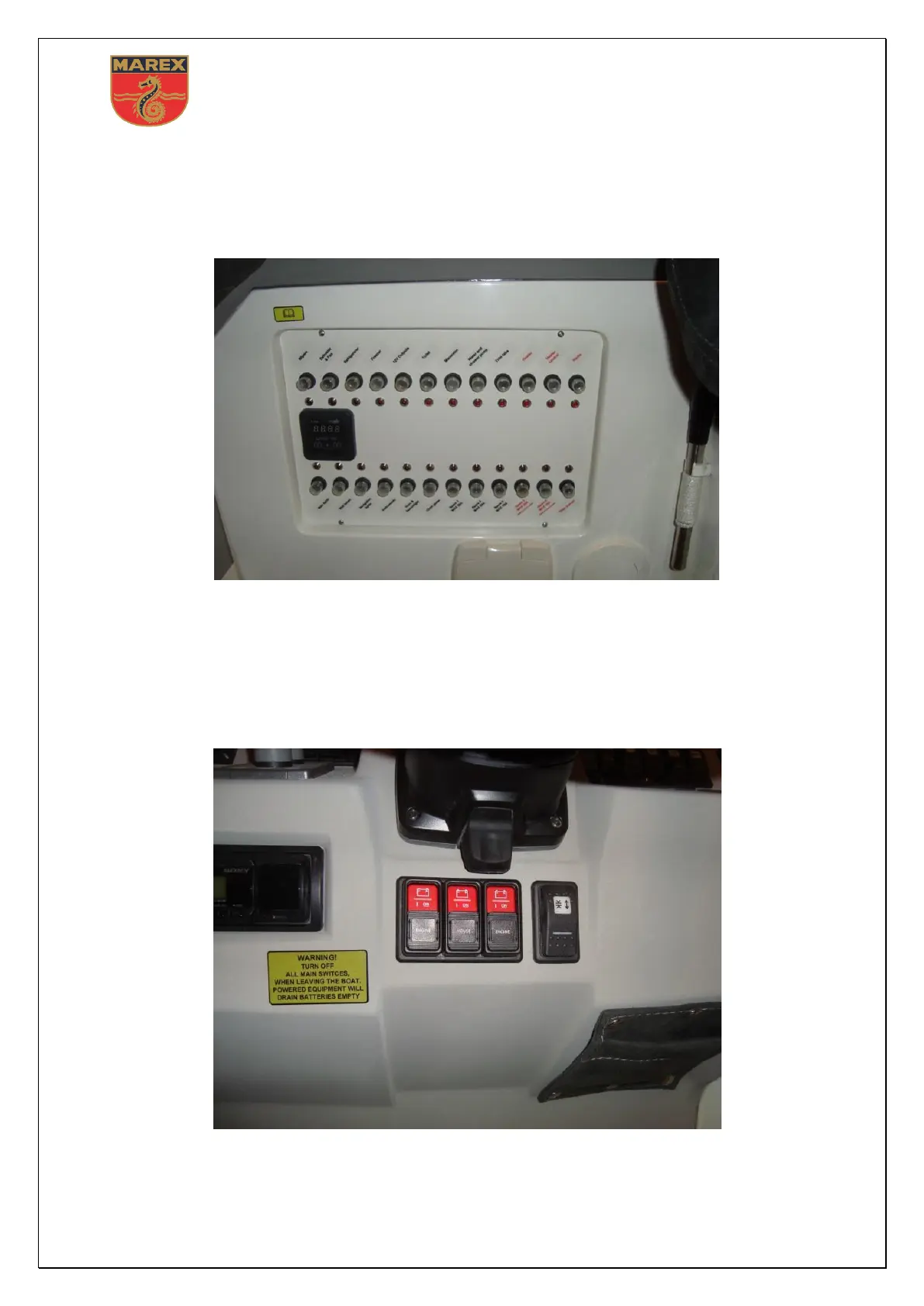 Main switches are located at the helmsman position, under the steering wheel.