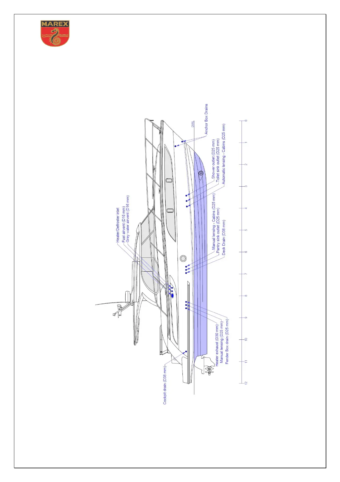 MAREX 375 - Positions of through Hull and Deck Fittings; Starboard Side