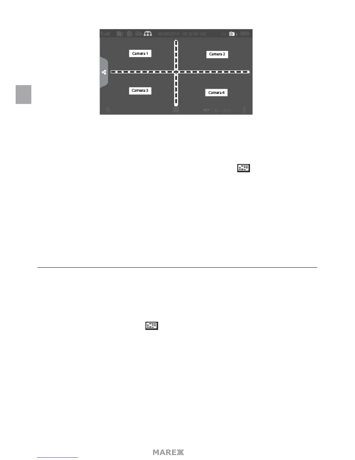 • Quad mode splits the screen’s image area into 4 quadrants and displays active camera video in each