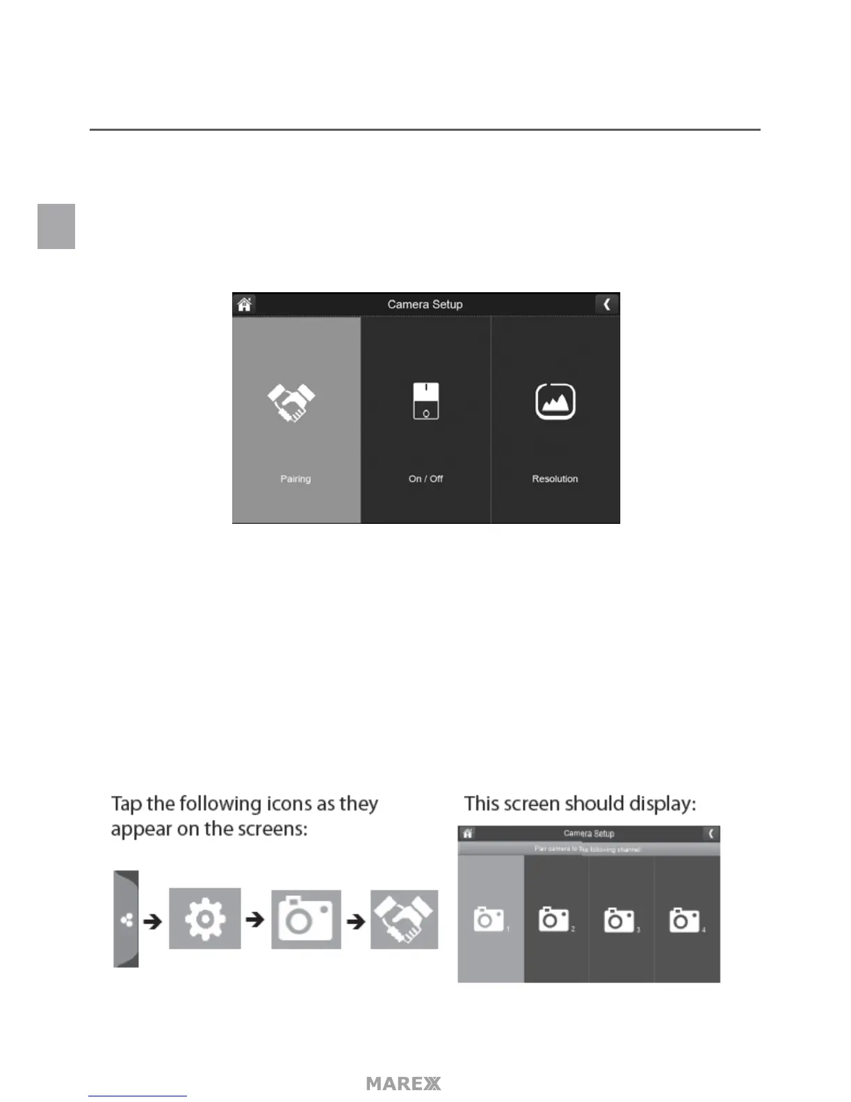 • Only pair one camera at a time! The monitor links to the rst camera it detects. If two or more cameras