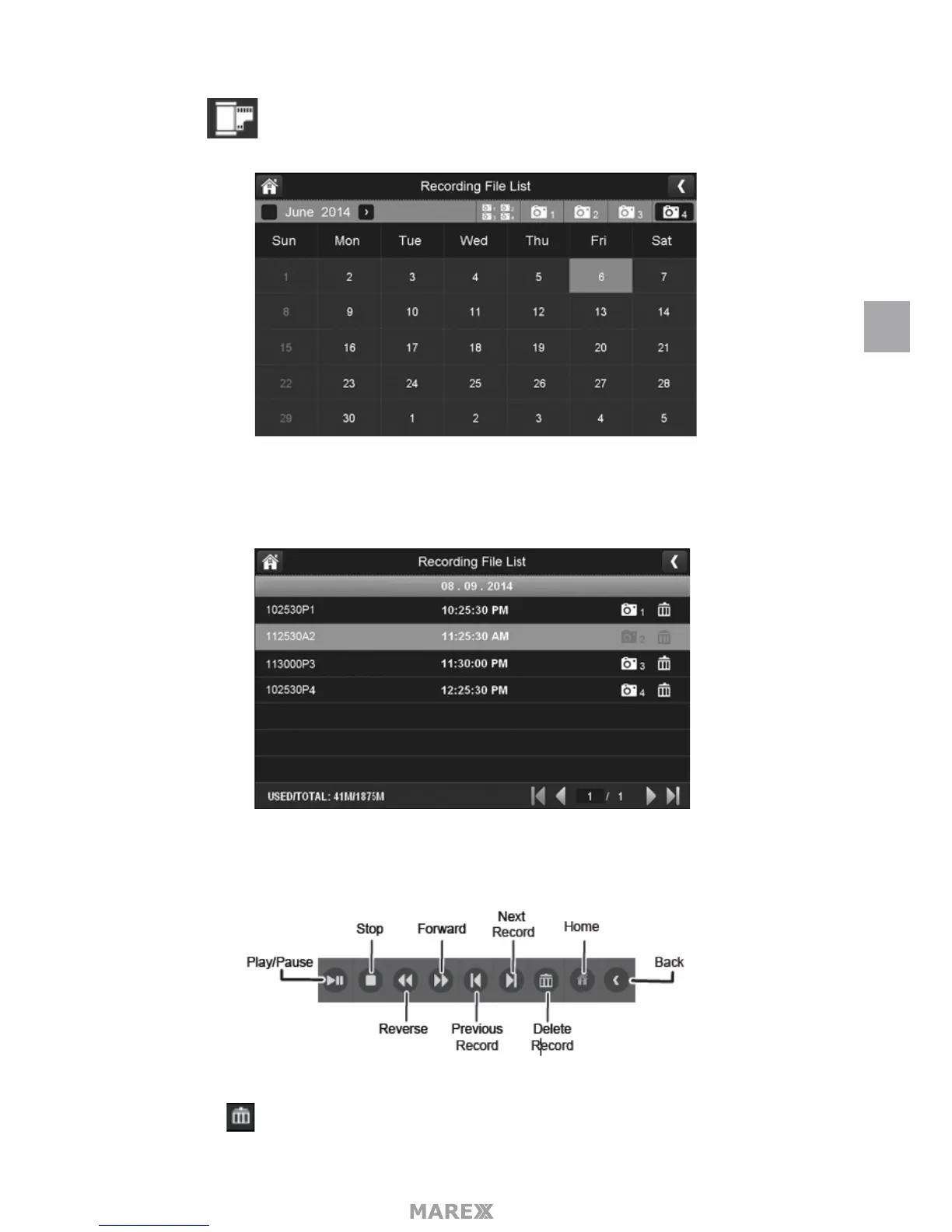 • Gemarkeerde dagen hebben opgenomen bestanden Druk op de dag die u wil bekijken voor een