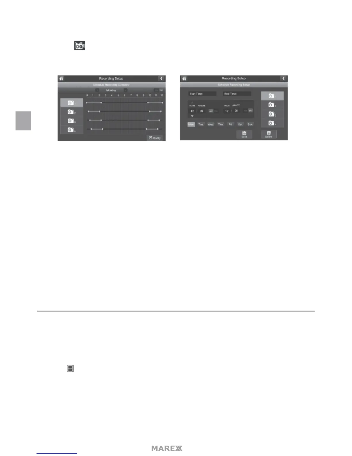2. Druk op MODIFY rechtsonder. Het Schedule Recording Setup menu verschijnt.