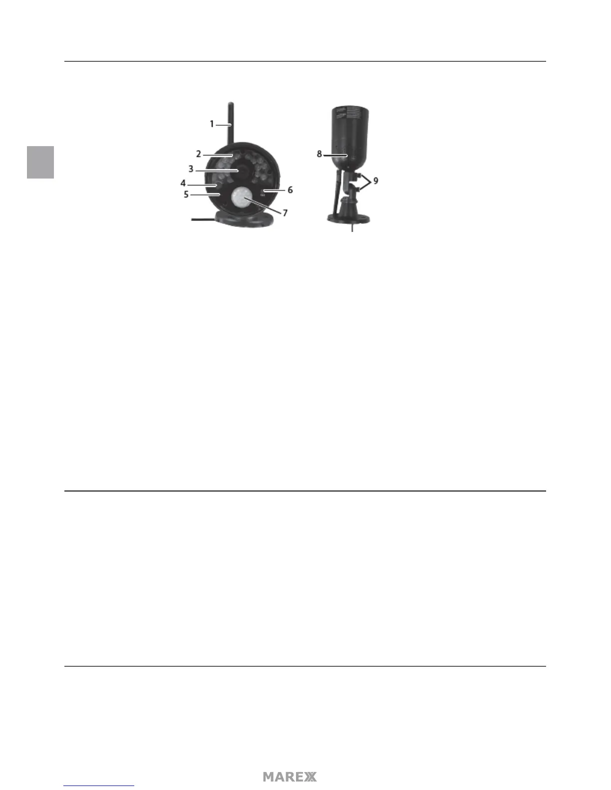 1. Camera Antenna: Sends and receives signals to/from the monitor.