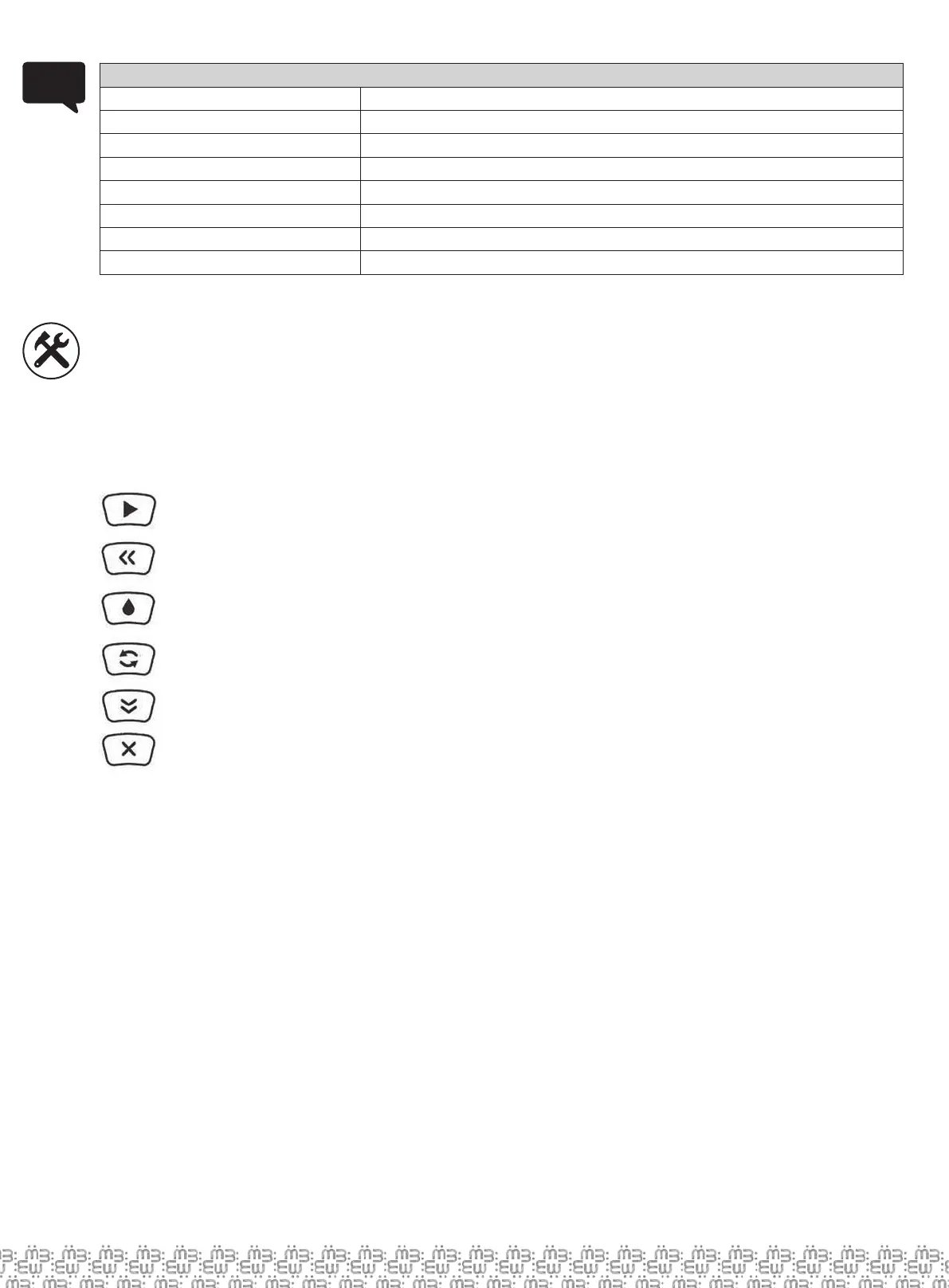 Przepłukiwanie: Funkcja ta jest używana na początku, do czyszczenia oraz do układania piasku po obiegu wstecznym;