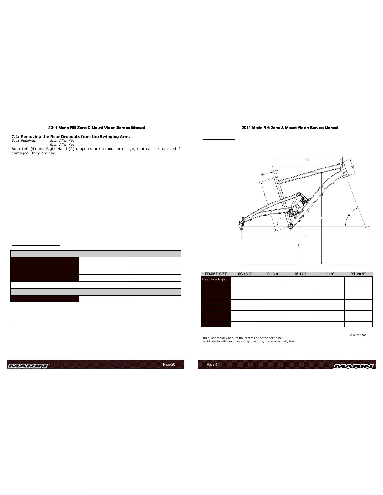 2011 Marin Rift Zone & Mount Vision Service Manual2011 Marin Rift Zone & Mount Vision Service Manual