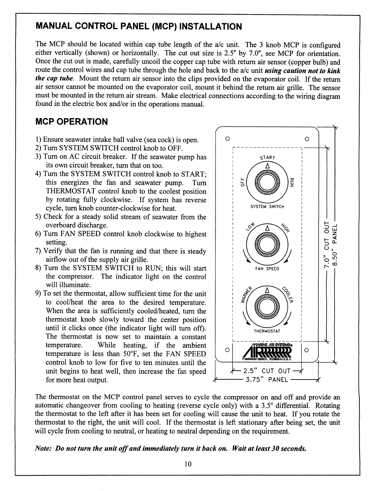 Marine Air Systems vector compact - Manual Control Panel (MCP) Installation; Manual Control Panel (MCP) Operation