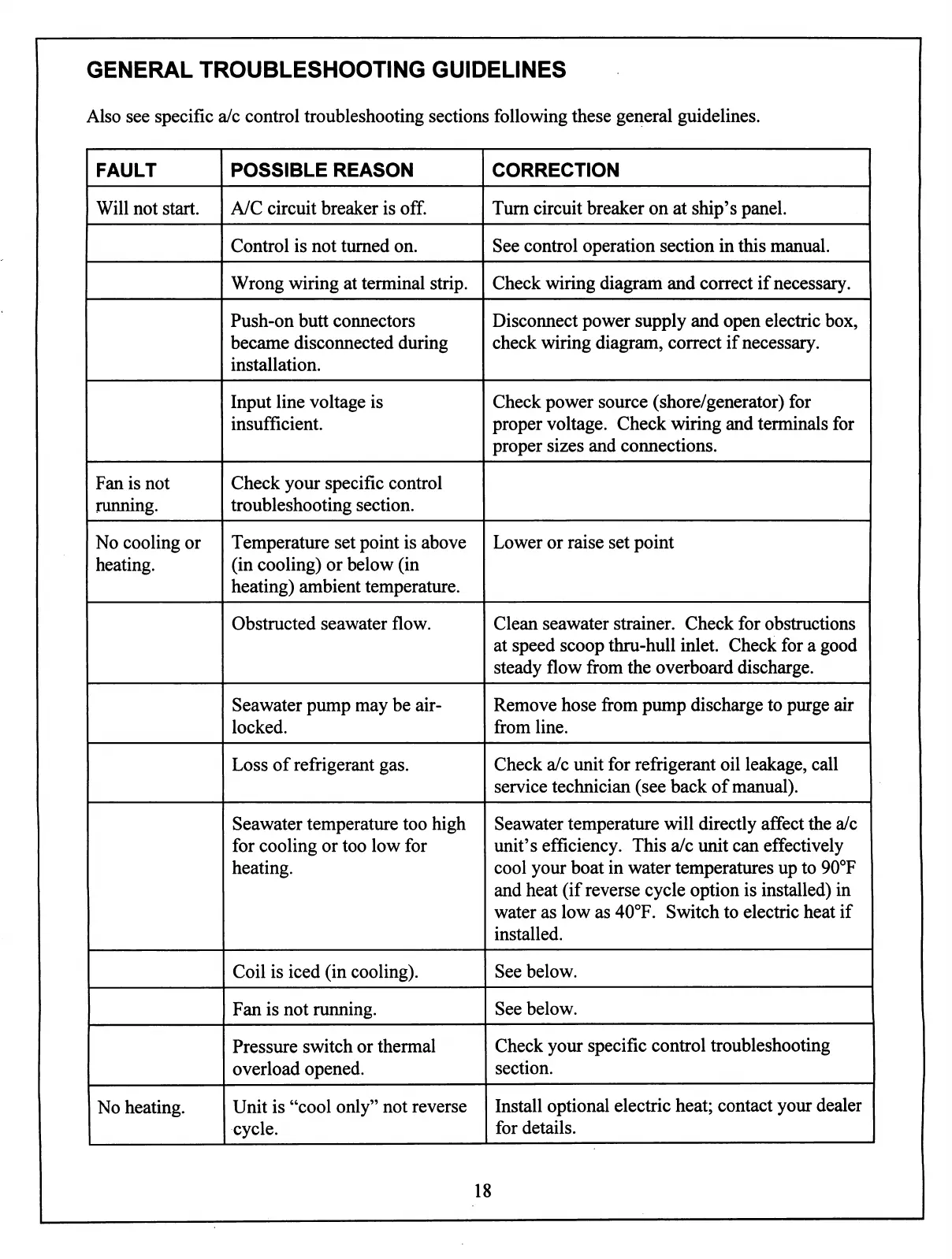 Marine Air Systems vector compact - General Troubleshooting Guidelines
