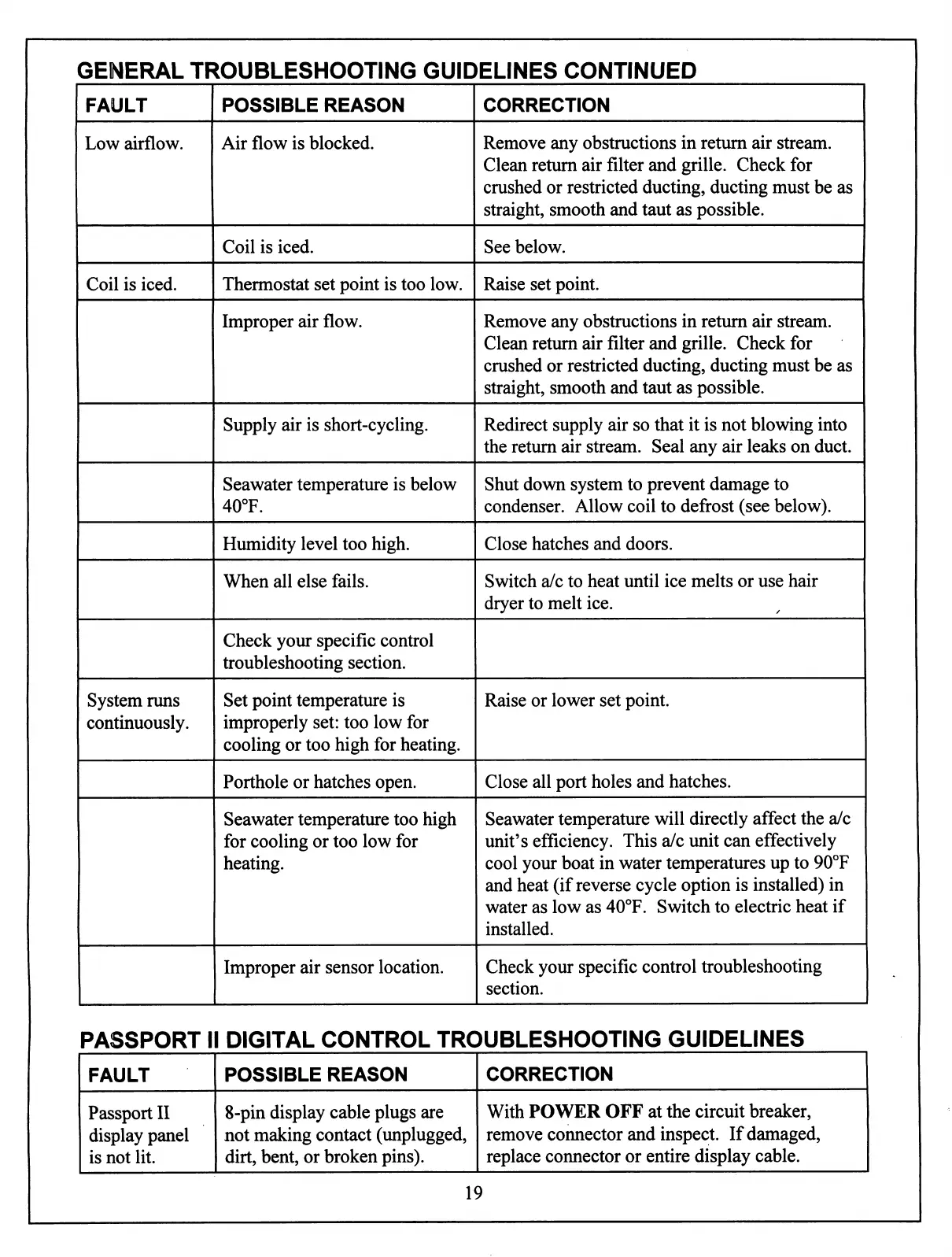 Marine Air Systems vector compact - Passport II Digital Control Troubleshooting Guidelines