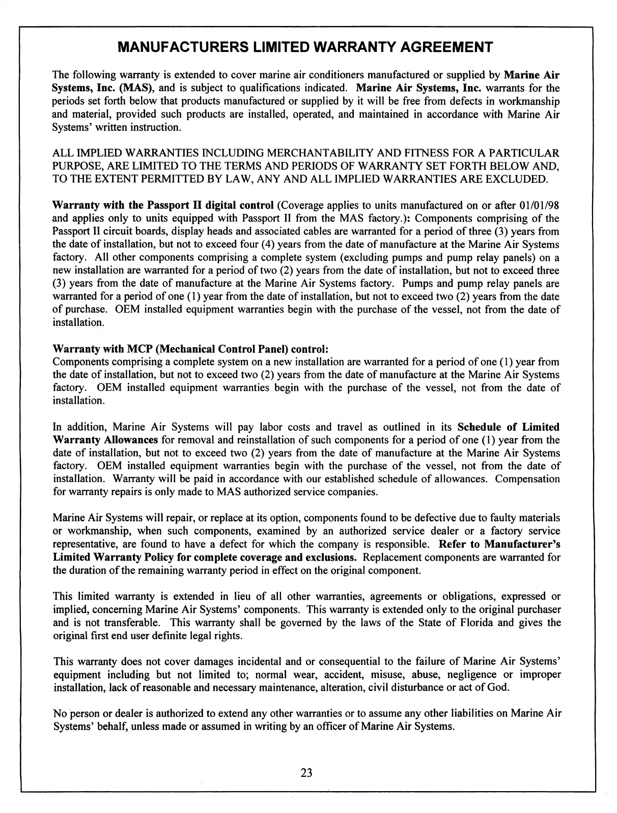 Marine Air Systems vector compact - Manufacturers Limited Warranty Agreement