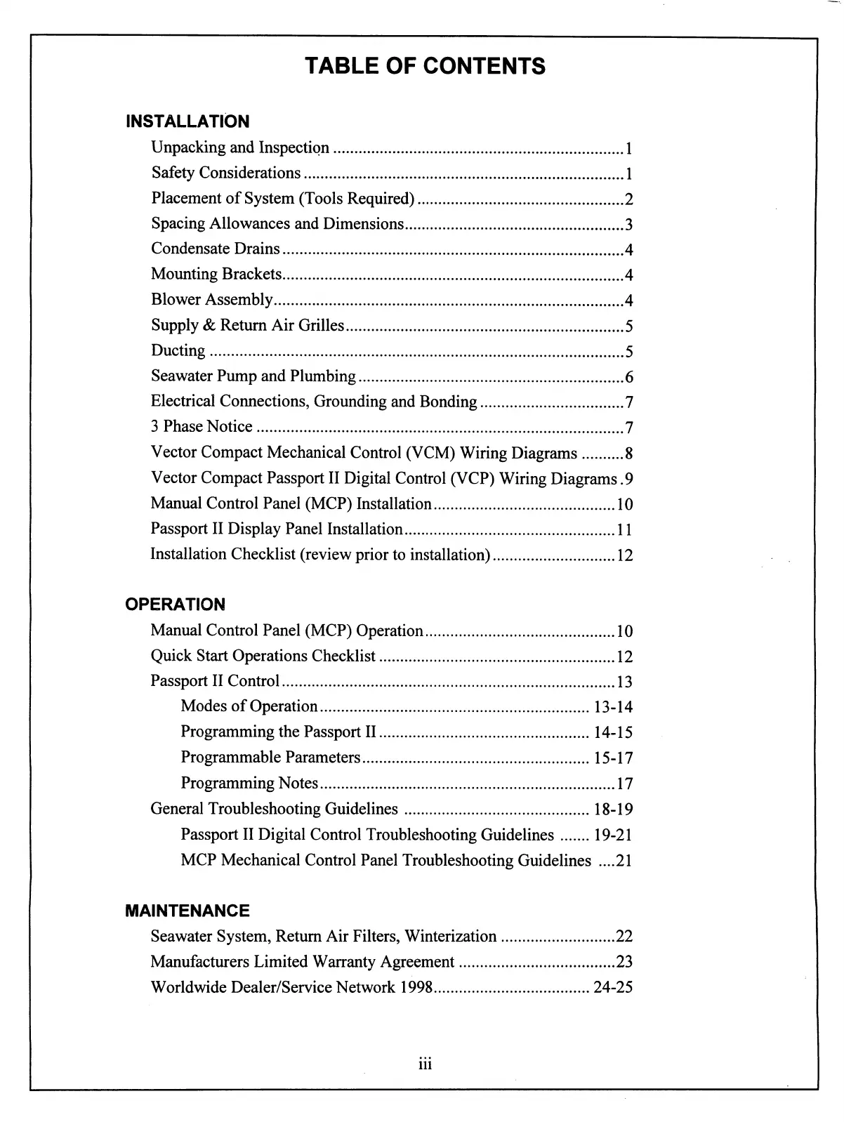 Marine Air Systems vector compact - Table of Contents