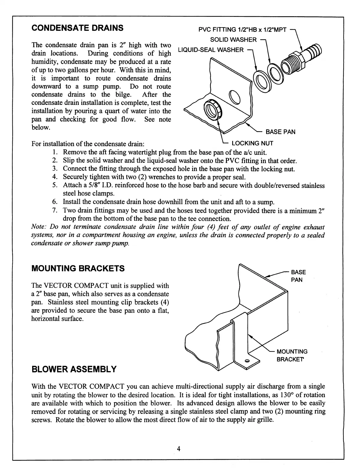 Marine Air Systems vector compact - Condensate Drains; Mounting Brackets; Blower Assembly