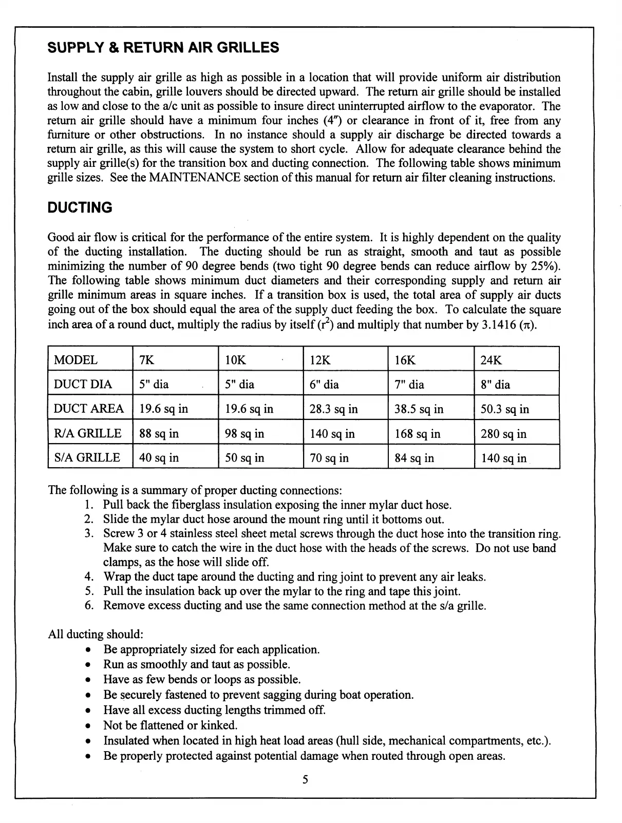 Marine Air Systems vector compact - Supply & Return Air Grilles; Ducting