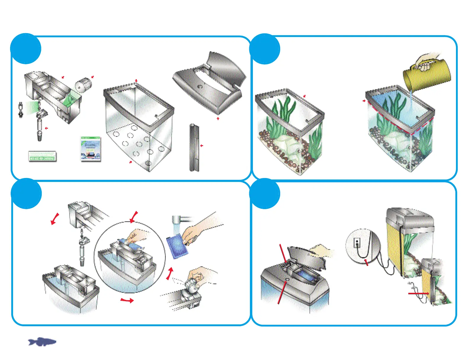 sólo 1-2 peces. Agregue más peces gradualmente en un periodo de 4-6 semanas. Si tiene preguntas o faltan piezas, llame a Atención al Cliente al (800) 322-1266.