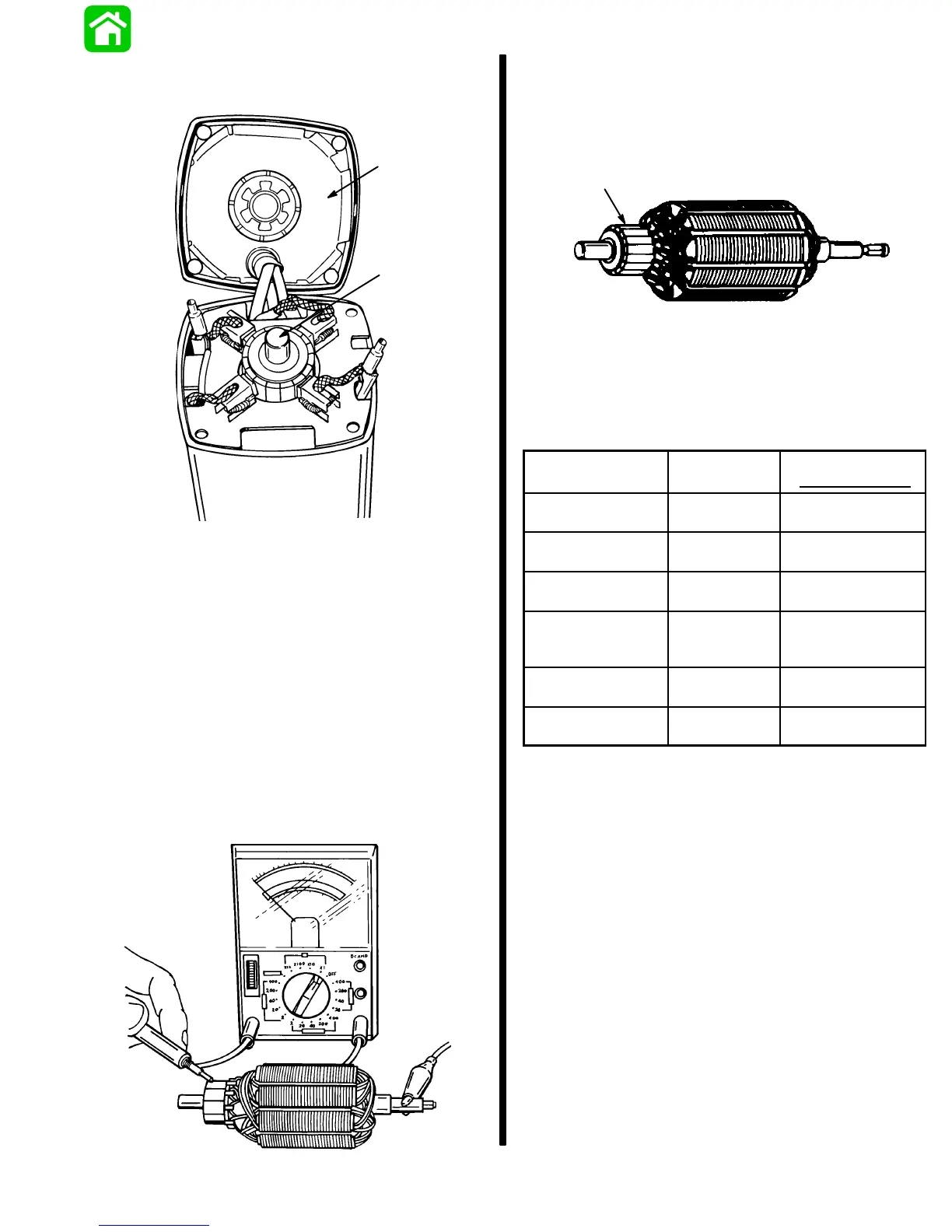 ufacturer’s instructions. Replace armature if a short is