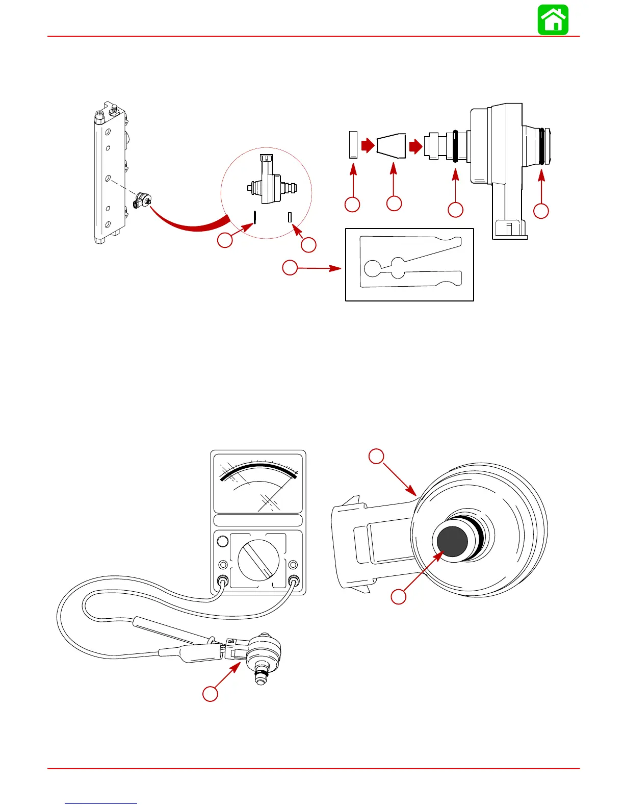 6. An ohm test of the direct injector may be made by connecting test leads to injector