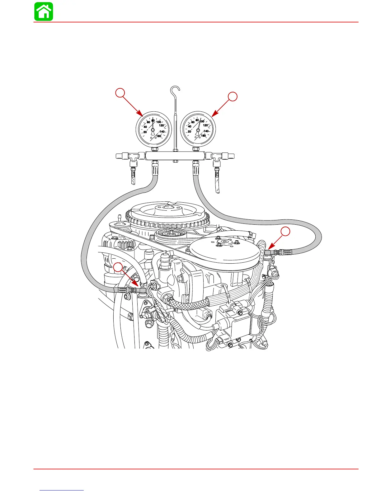 Install Pressure Gauge Assembly 91-852087A1/A2 to fuel rail pressure test valves. Star-
