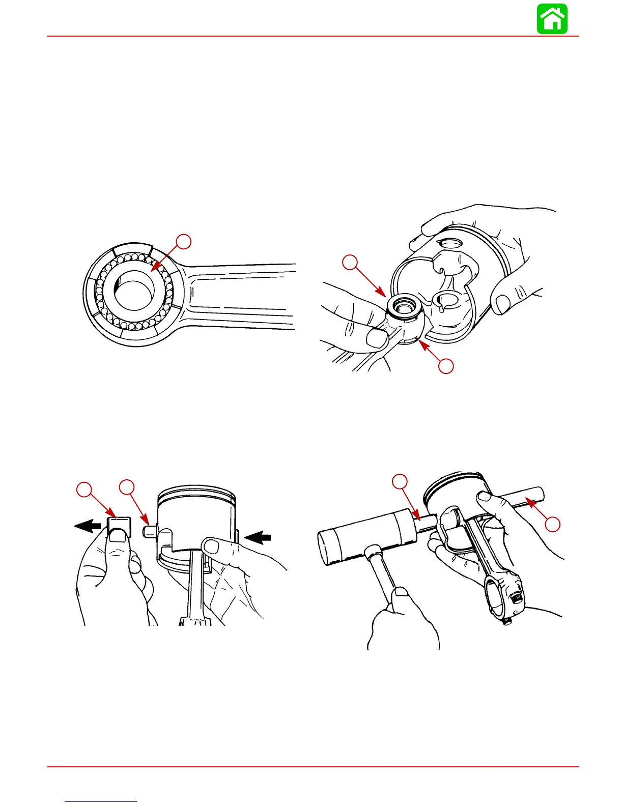 2. Place sleeve which is part of piston pin tool (91-74607A1) into connecting rod and in-