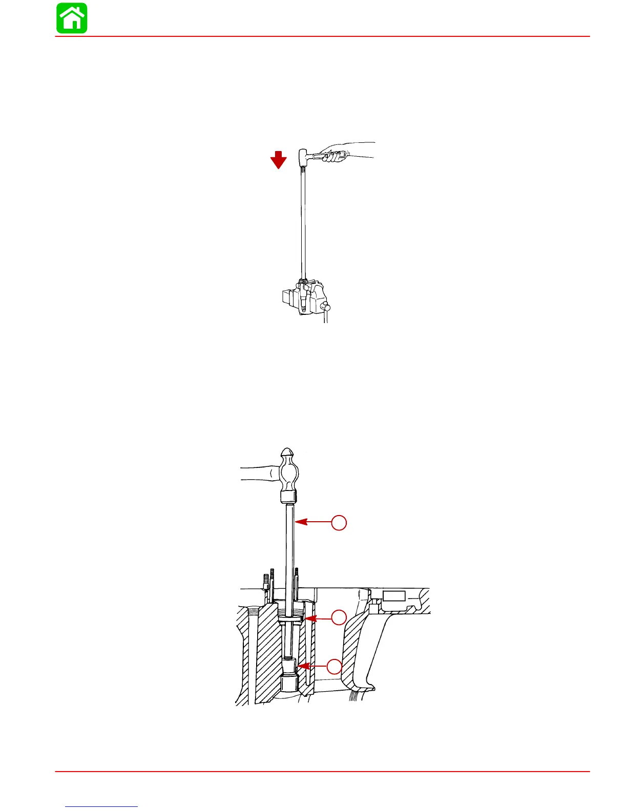 b. Strike shaft with a lead hammer; take care not to drop shaft.