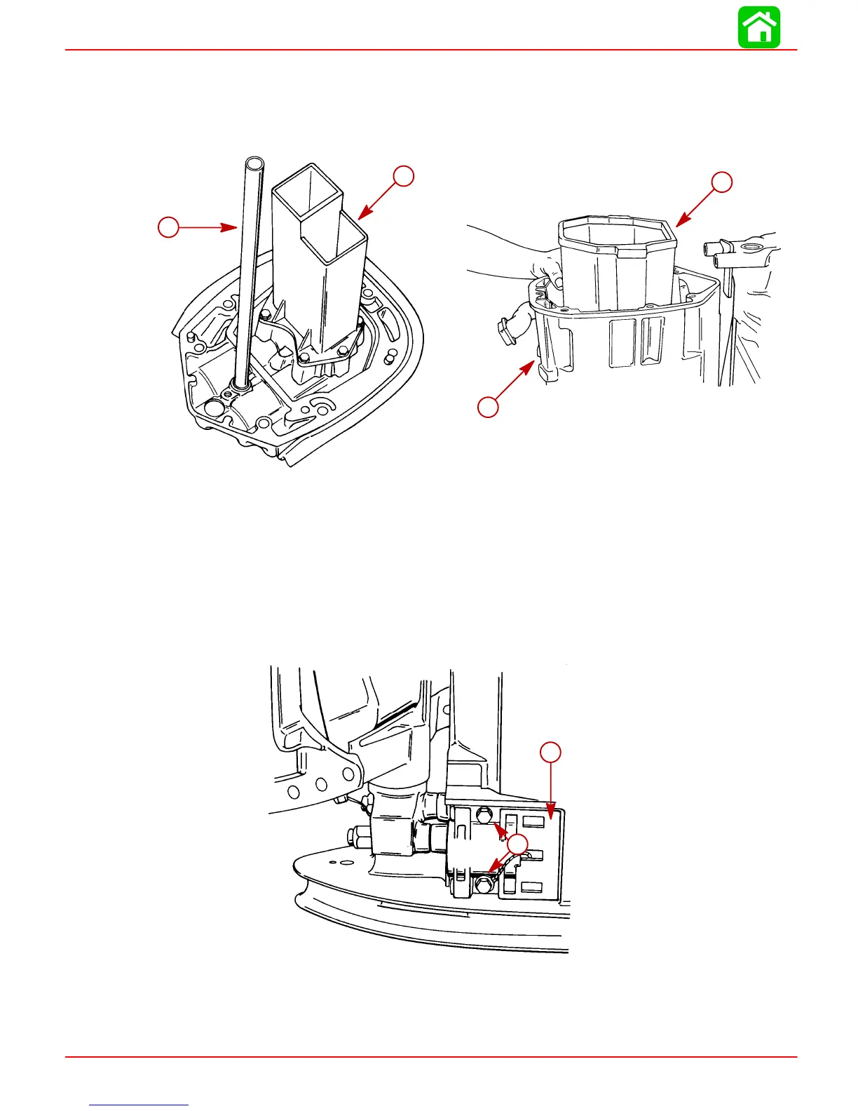 7. Remove bolts, which secure lower mount retainers to drive shaft housing, and remove