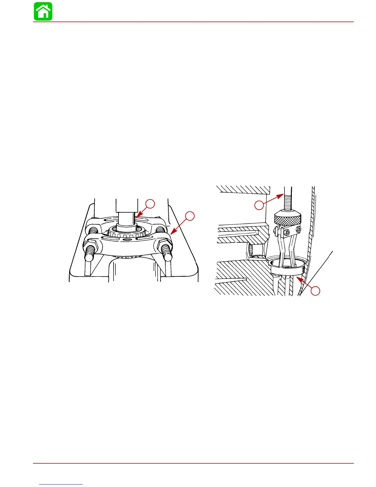 b. Place forward gear, bearing and puller plate on a press and press gear out of bear-