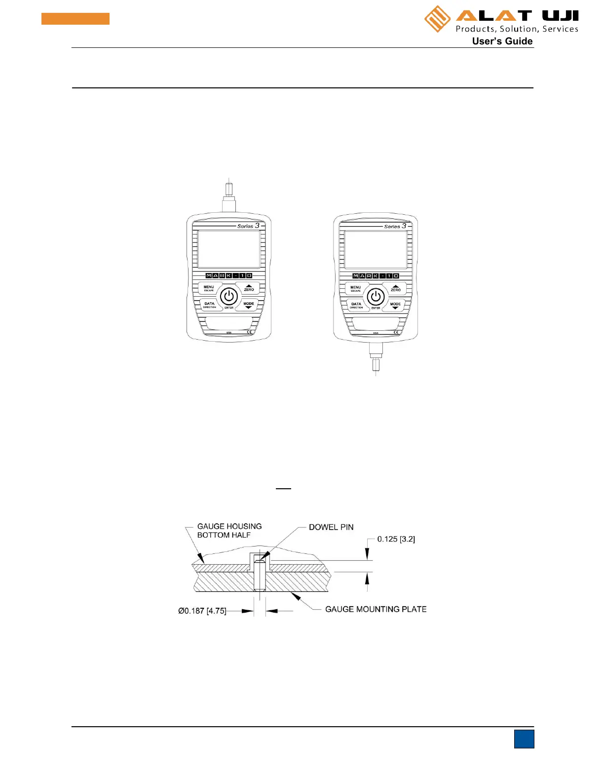 during a test. A mating dowel pin should be used (see illustration below). Mounting plates on Mark-10 test