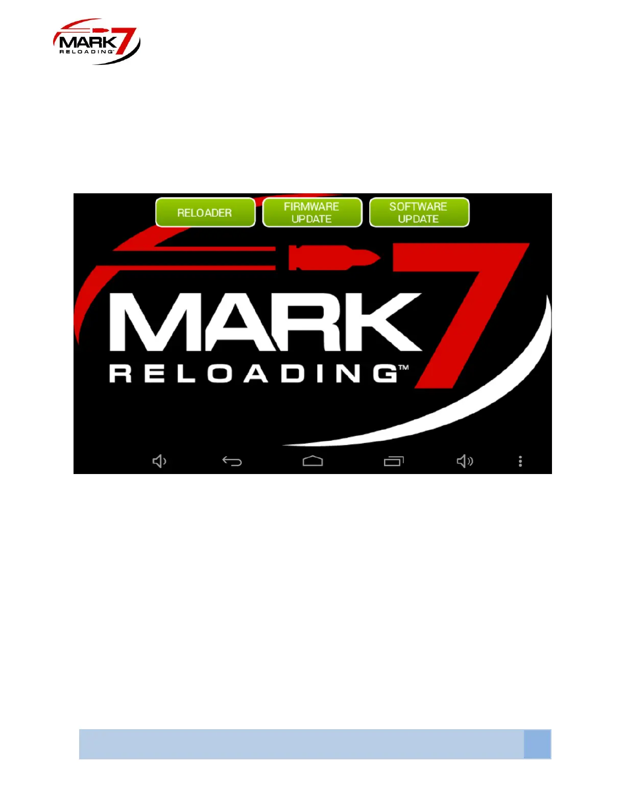 This home screen contains the Reloader , firmware and software applications. The firmware