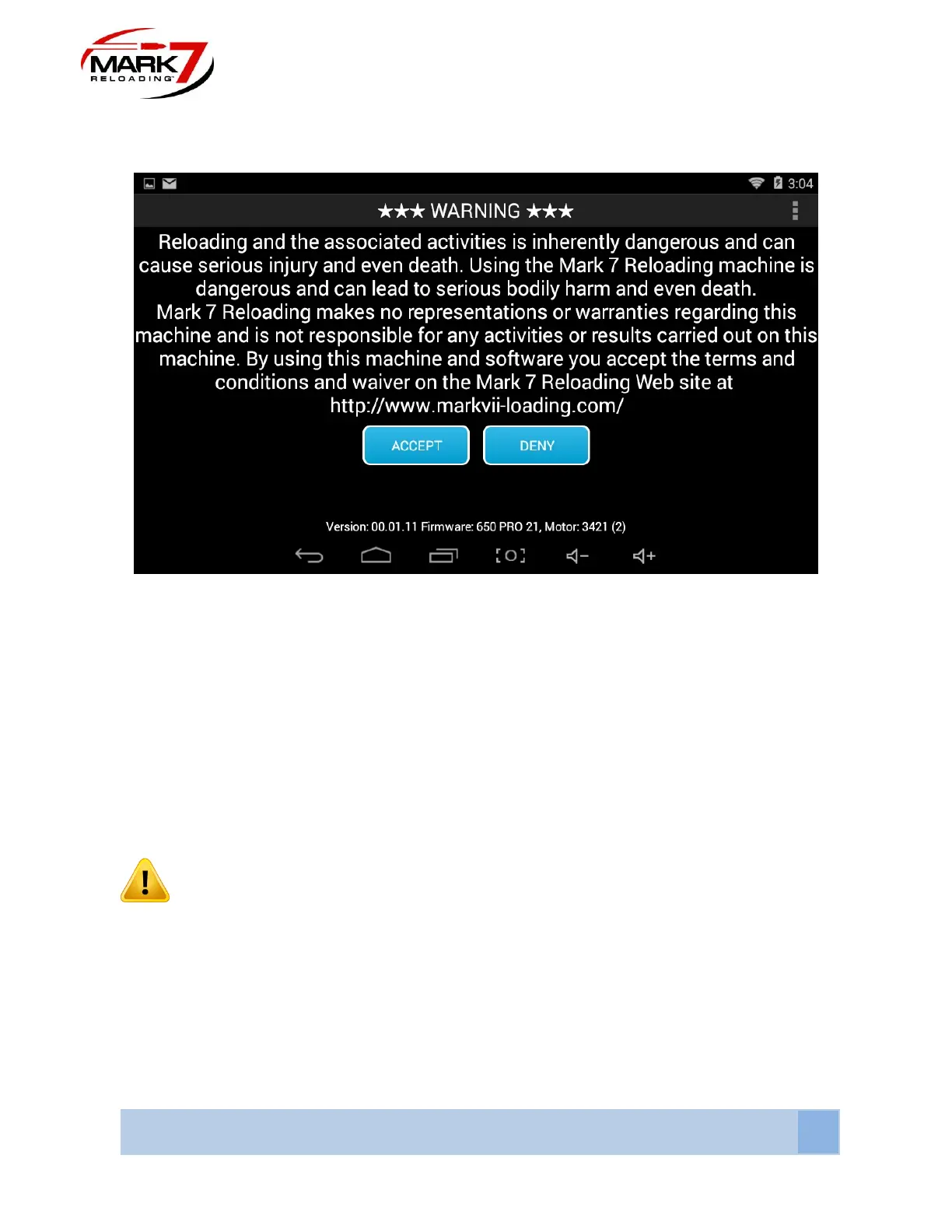 accept the terms and conditions and waiver on the Mark 7® Reloading website in order to run