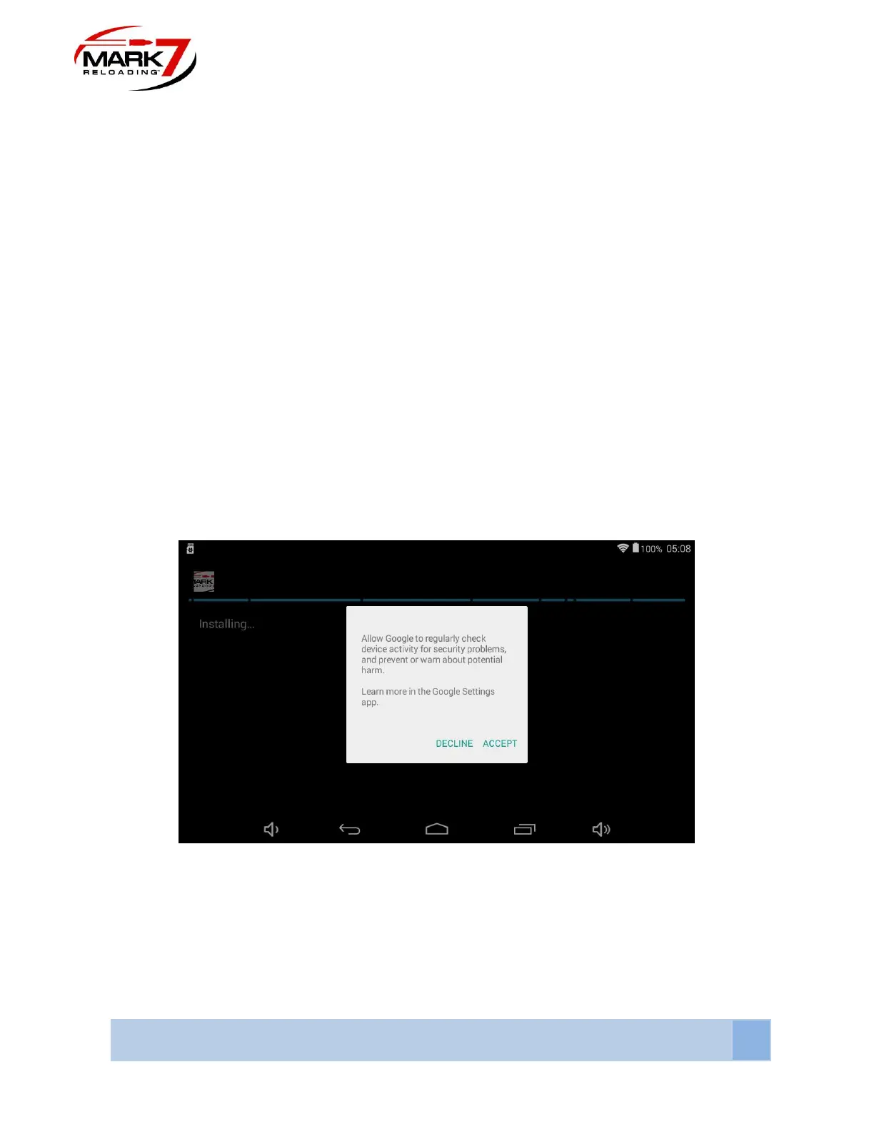 If you have enabled Wi-Fi on your tablet the above message will appear. Select Accept and