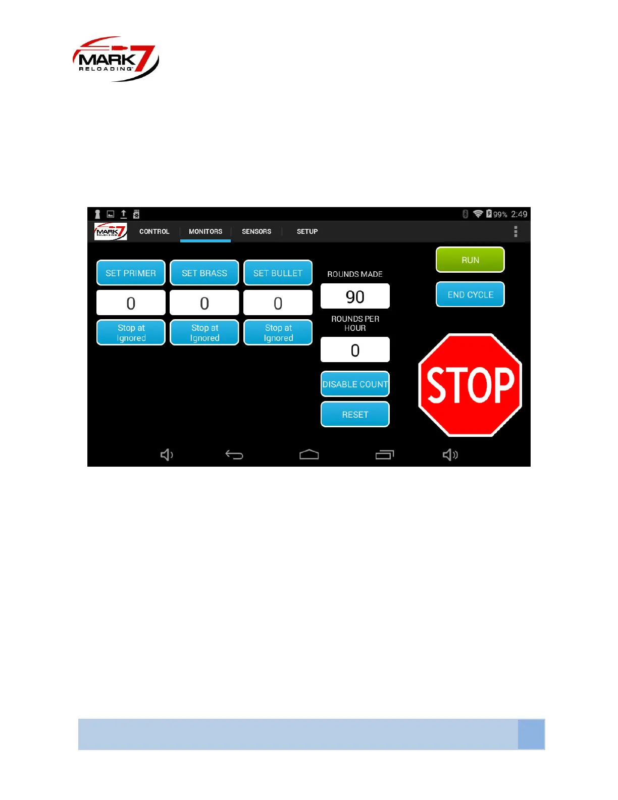 SET BULLET - The operator has the ability to set the number of bullets used before the Mark 7®