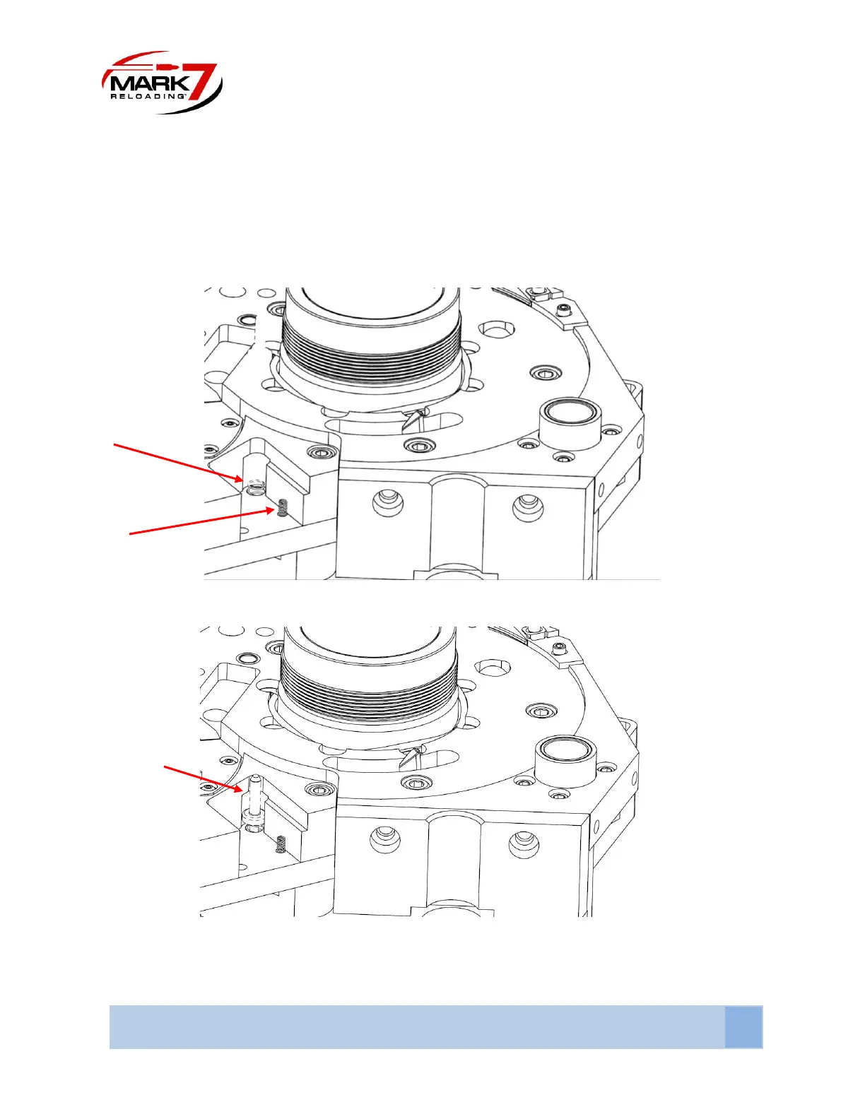 Place the two springs into the spring wells in the primer housing as shown. Apply a small amount of red