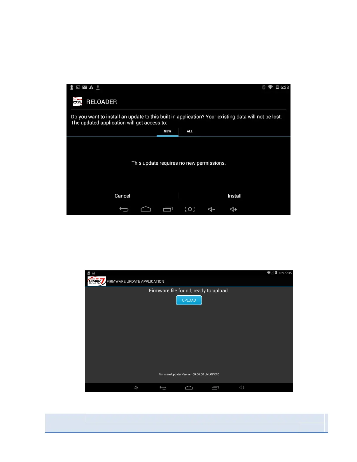 press UPLOAD and press CLOSE when complete. Select the Reloader application and confirm