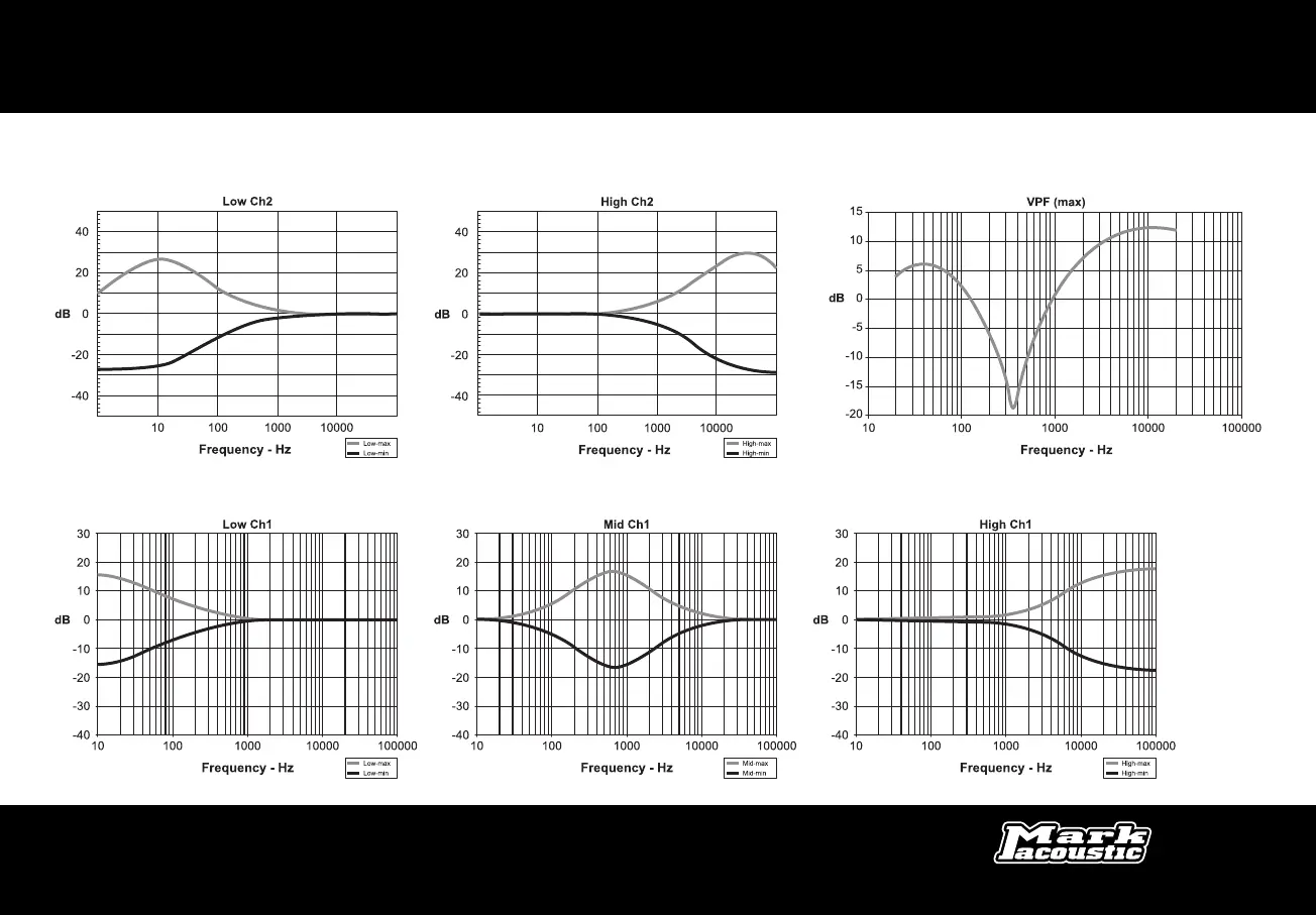 Mark Acoustic AC 101 - Filter and EQ Response Graphs; Channel 2 EQ and VPF Response Curves; Channel 1 EQ Response Curves