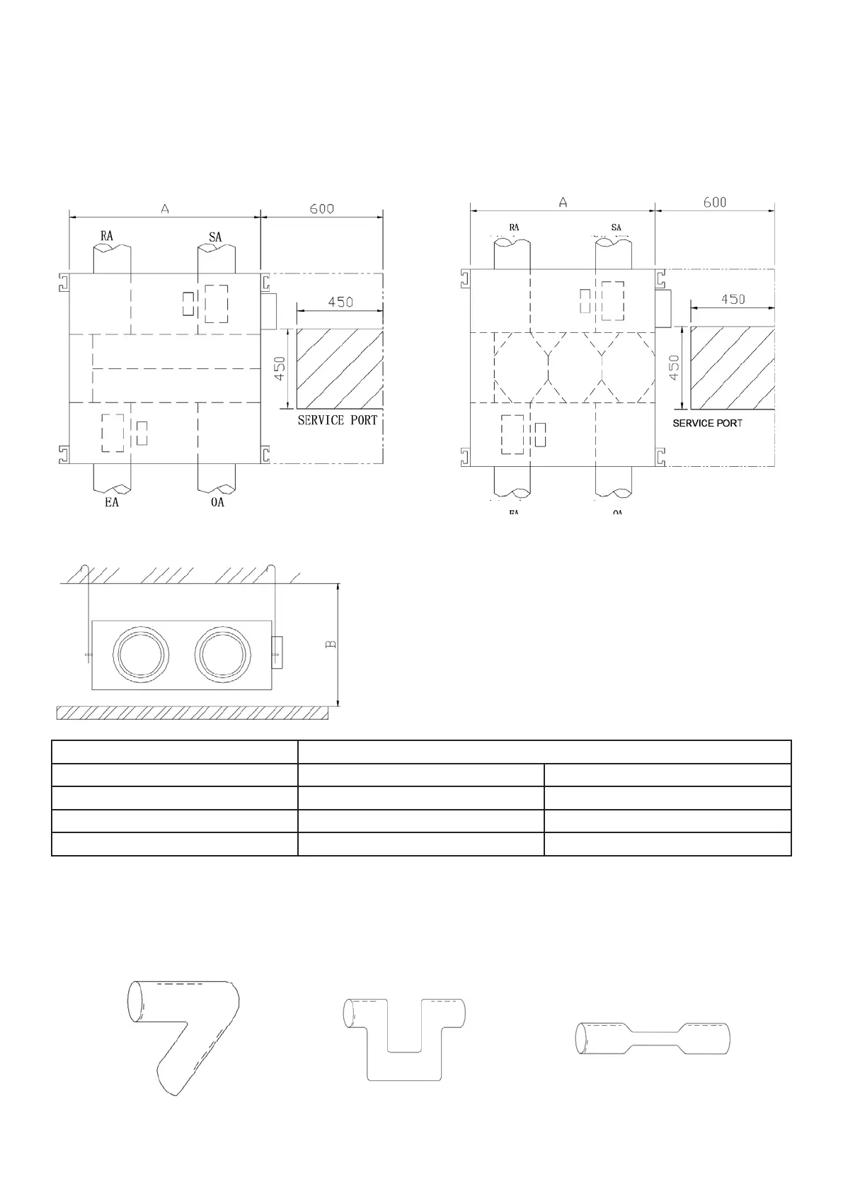 1. Zorg ervoor dat de plafondhoogte niet minder is dan de cijfers in de bovenstaande tabel, kolom B.