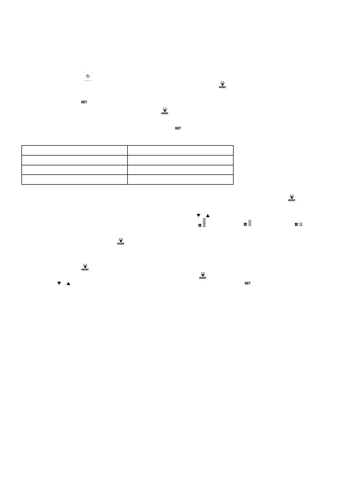 onderstaande tabel en druk nogmaals op de knop om de instelling te bevestigen. Op dezelfde manier