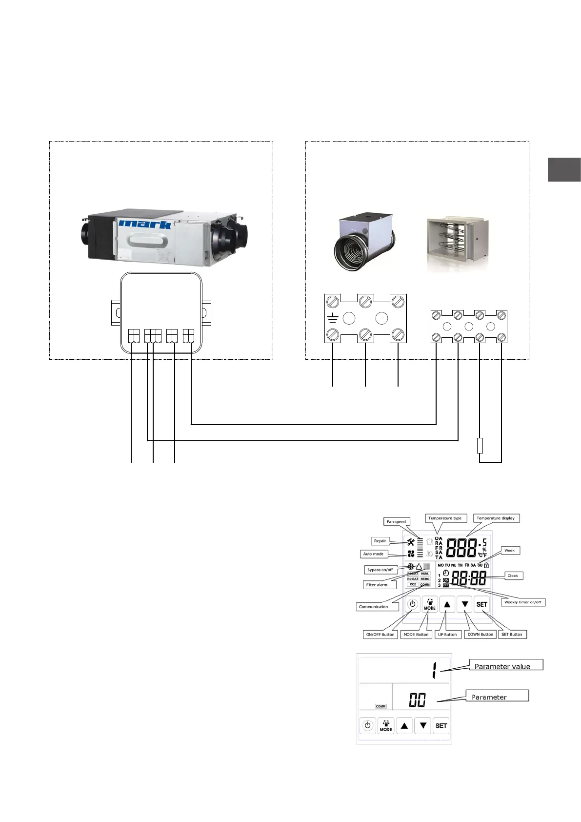 • Conectaţi ERV şi încălzitorul în conformitate cu diagrama de mai jos.