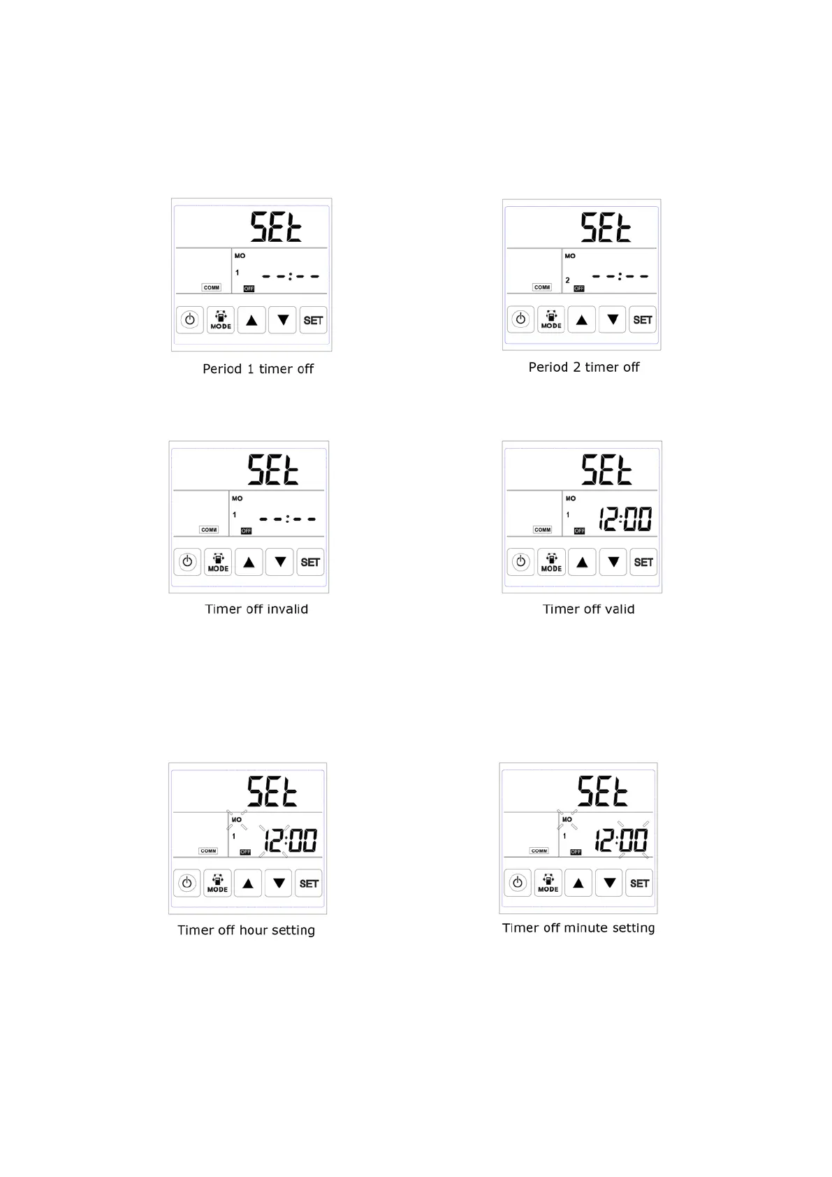 press SET button to save and switch to the next day timer off setting and repeat the above steps to set