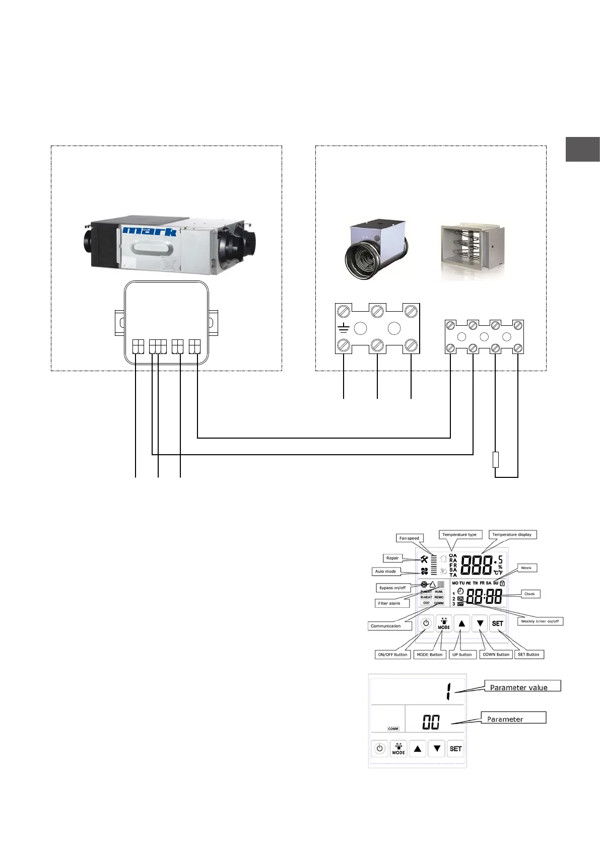 • Connect the ERV and heater according to the diagram below.
