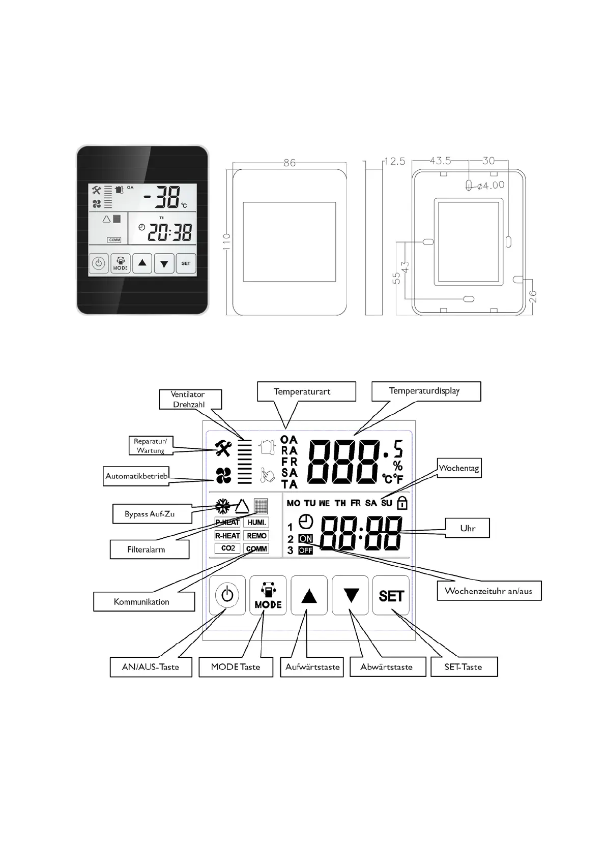 Die intelligente Steuerung wird an der Oberäche montiert und verfügt über einen LCD-Touchscreen. Das