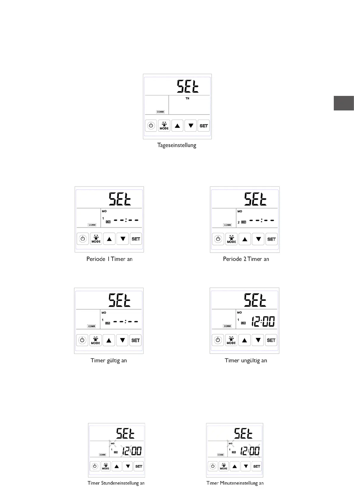SET-Taste um die Schaltuhr zu starten. Zum Einstellen der Zeitbereiche drücken Sie immer wieder die