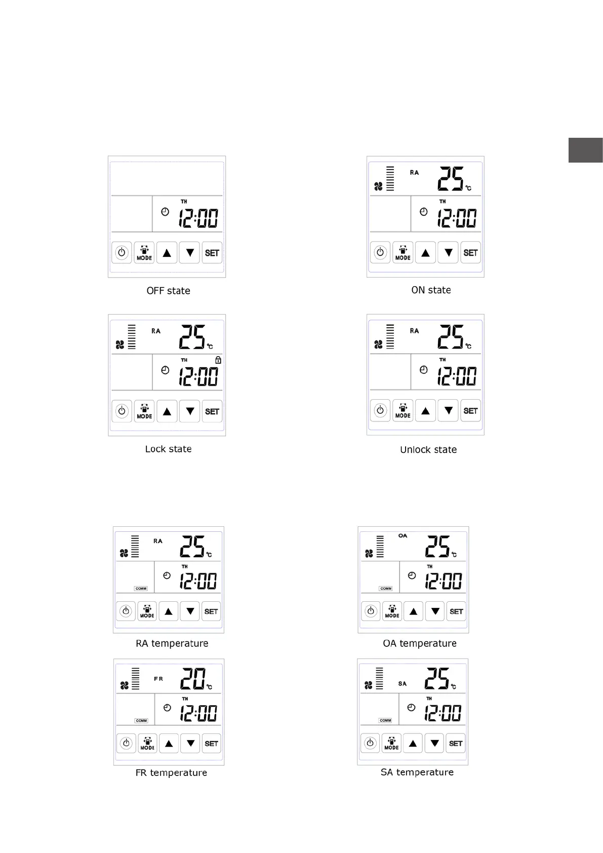 2. Mode switch: press MODE button to choose display the RA-OA-FR(EA)- SA Setting-CO2 status or