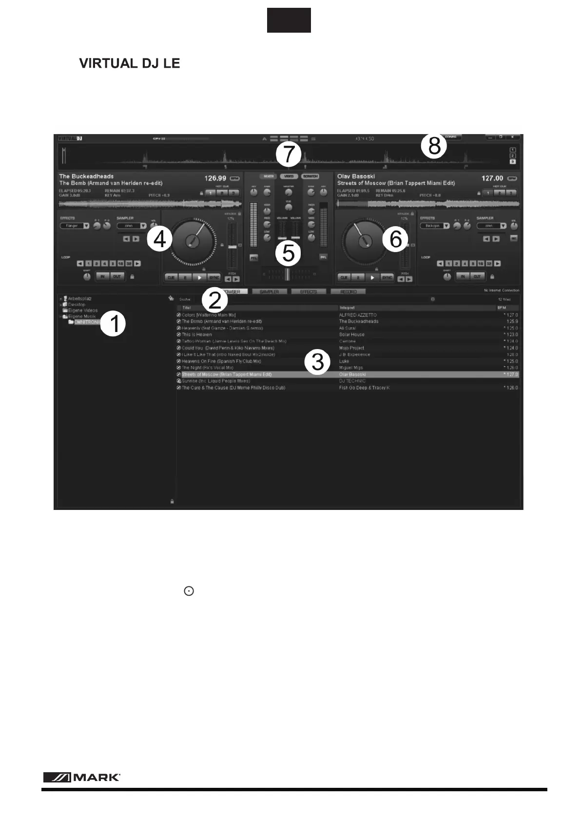 Similar al controlador, el interfaz de usuario del software está dividido en varias secciones: En la parte superior de la pantalla